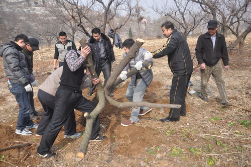 3月1日早上七點(diǎn)半,在物業(yè)公司領(lǐng)導(dǎo)的組織下,各項目員工共40余人一同前往贊助林區(qū)。大家分成五個小組,定額采挖樹苗任務(wù)。各小組組織縝密、分工明確,均超額完成了預(yù)定任務(wù),共栽種100余科樹苗。與此同時,為了保證樹苗的成活率,銀豐花園、銀豐山莊、康橋頤東社區(qū)的業(yè)主在綠化中心師傅的指導(dǎo)下,紛紛在各社區(qū)綠化帶挖好樹坑等待栽種。