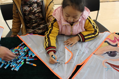 各式各樣的成品風箏一一陳列在展臺上,吸引了眾多業(yè)主和小朋友們的目光。在專業(yè)美術老師的指導下,小朋友們都專心地畫起了自己手中的風箏,不一會,五顏六色、各式各樣的風箏就展現(xiàn)在大家眼前,有玩具總動員中的汽車,有寵物小精靈里的皮卡丘,還有憑借自己的想象畫出的一幅幅唯美且具有抽象藝術風格的風箏畫。風箏畫好了,小朋友們都迫不及待的來到廣場上放飛,看著天上色彩斑斕的風箏,銀豐唐郡的業(yè)主們也都開心的互相交流起來?! ?br />