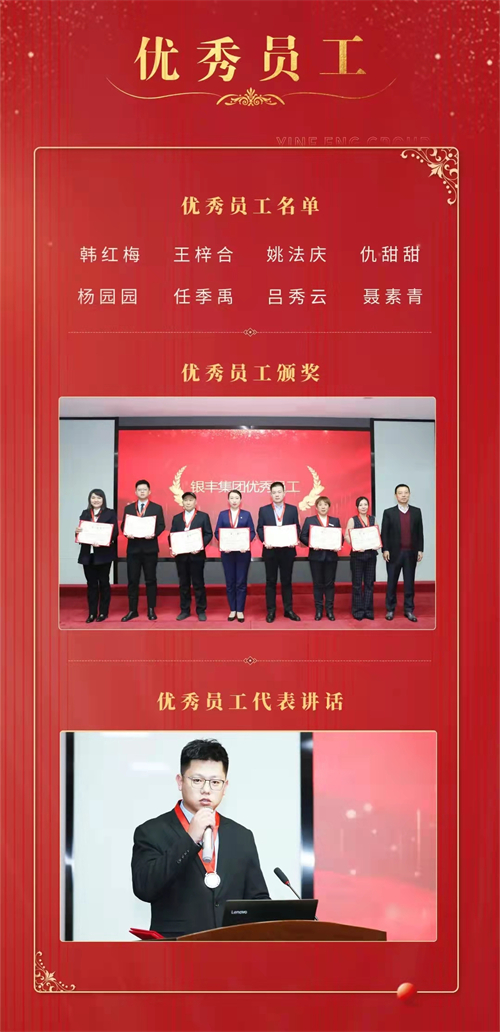 2021年,有一群銀豐人在工作中兢兢業(yè)業(yè),在崗位上發(fā)光發(fā)熱,以實際行動展現(xiàn)出銀豐人的責任與擔當,成為了我們身邊的榜樣,彰顯進步,鼓舞斗志。2021年銀豐集團優(yōu)秀員工表彰大會評選出8位優(yōu)秀員工,他們中有開拓進取的地產(chǎn)開發(fā)經(jīng)理,有盡職盡責的物業(yè)工程主管,有業(yè)績不凡的生物地區(qū)經(jīng)理,還有一年收到108封感謝信,40余張認可卡的樓層服務員等。他們一個個感人的事跡,優(yōu)異的成績,都成為了銀豐人的標桿與榜樣。