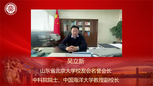 山東北大校友會(huì)名譽(yù)會(huì)長(zhǎng)、中科院院士、中國(guó)海洋大學(xué)副校長(zhǎng)吳立新院士因工作原因未能參會(huì),也發(fā)來情真意切的視頻賀詞。吳立新給校友們送上新春祝福,對(duì)校友會(huì)的辛勤付出和杰出貢獻(xiàn)表示感謝,并鼓勵(lì)大家弘揚(yáng)無私奉獻(xiàn)的北大精神,為中華民族的偉大復(fù)興貢獻(xiàn)一份力量。